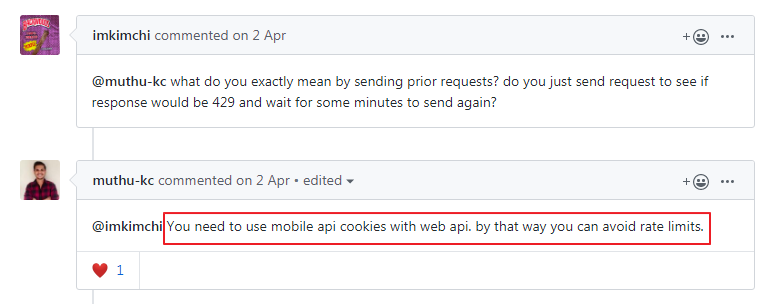 테스트를 해보면 정상적인 호출이 가능합니다. 저 쿠키로 WEB API를 무한 사용이 가능한지 아직 모르겠지만, 적어도 모바일 APP에서 사용하는 쿠키를 추출한건 맞는것 같습니다.