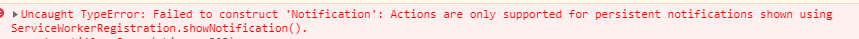 Uncaught TypeError: Failed to construct 'Notification': Actions are only supported for persistent notifications shown using ServiceWorkerRegistration.showNotification().