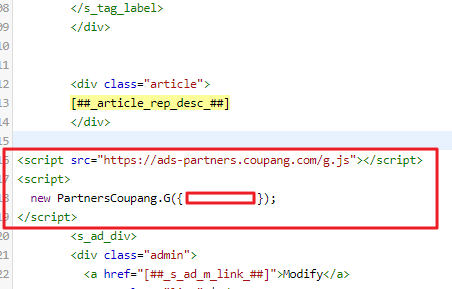 만약 여러개의 배너를 추가할 경우엔 <script src="https://ads-partners.coupang.com/g.js"></script> 이 코드는 상단에 한번만 사용하면 됩니다.