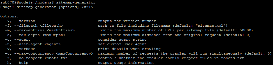 sitemap-generator -v 파일명 http://example.com