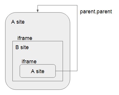 B사이트에서 호출한 A사이트의 화면에서는 parent.parent 로 상위에 있는 화면과 동일한 도메인이기 때문에 함수를 호출할 수 있습니다. 따라서 아래처럼 호출만 하면 됩니다.