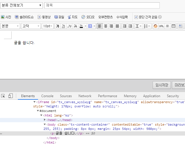 먼저 티스토리에서 사용되는 웹 에디터는 어떤 형태로 동작하는지 보도록 하겠습니다.