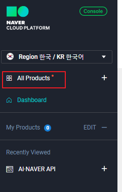 ‘AI·NAVER API’ 를 클릭합니다.