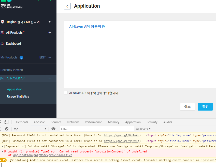 약관이 나오는데 스크립트 오류가 나서 그런지 약관이 안보입니다. 이상한 내용이 있었던건 아니겠죠? 그냥 동의하고 넘어갑니다.