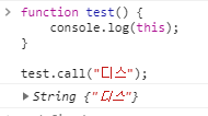 function test() {console.log(this);}test.call("디스");